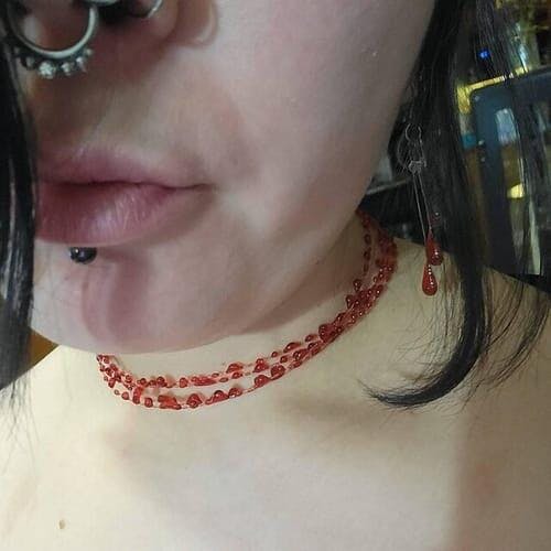 Ahreema It’s so pretty! The blood drips are fantastic and look great when worn. The speckled red from the light shining through onto your skin or wherever it’s placed is so pretty. Will make a great gift for my friend.